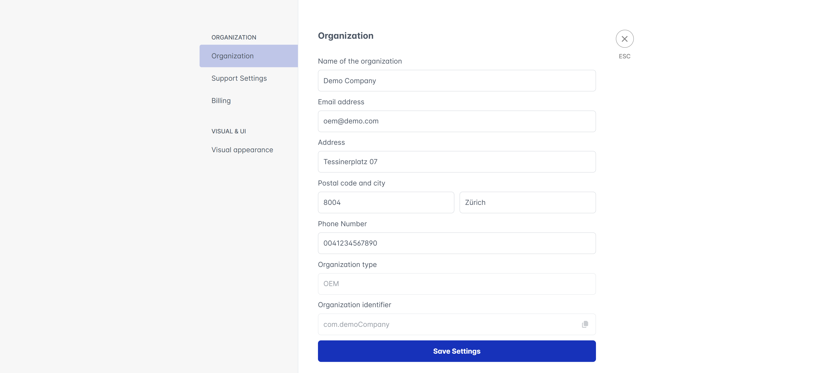 Organization settings