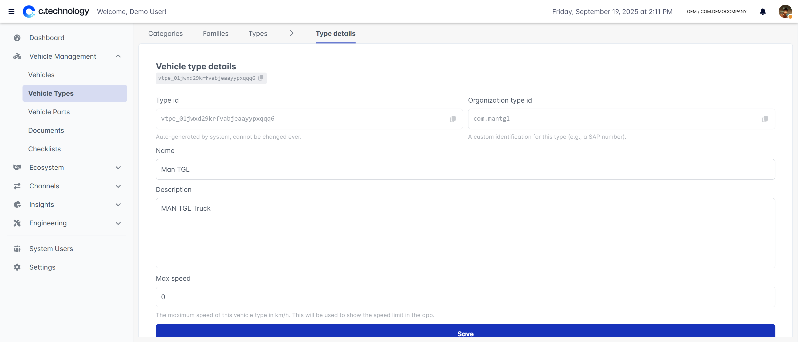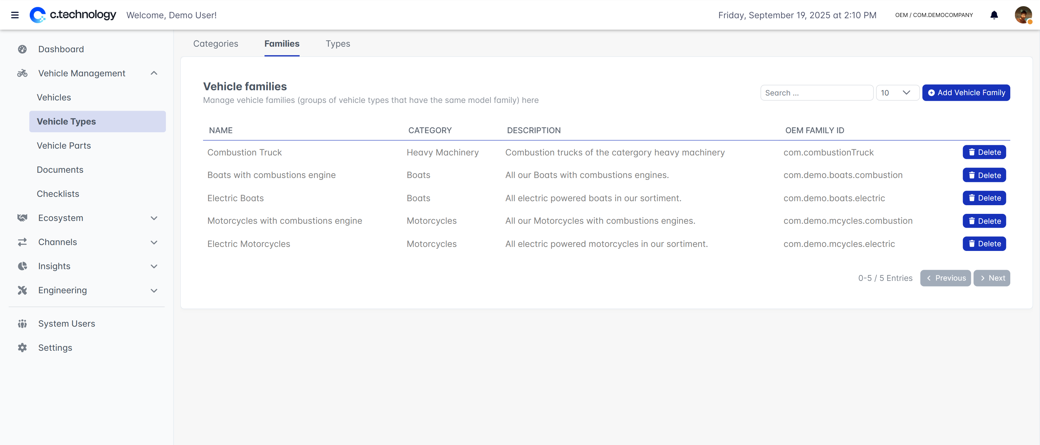 On the lowest level, this tab lets you define specific vehicle models that customers purchase and register in your system.